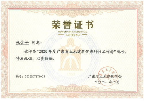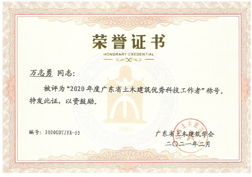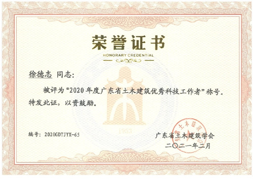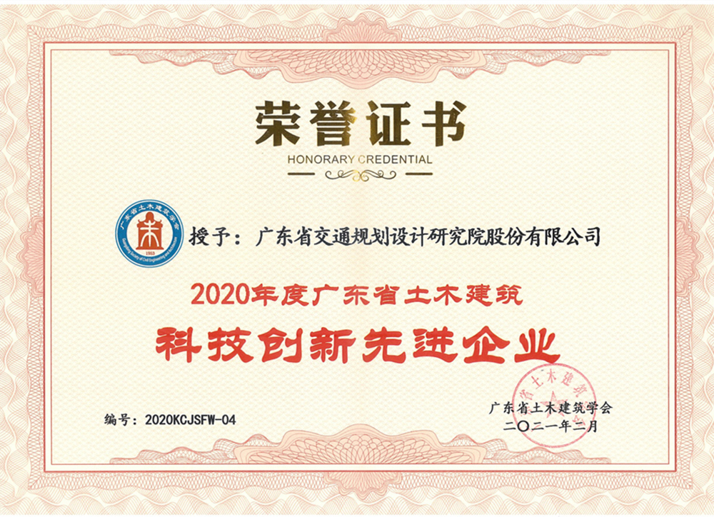近日,公司被廣東省土木建筑學(xué)會(huì)授予“2020年度廣東省土木建筑科技創(chuàng)新先進(jìn)企業(yè)”榮譽(yù)稱號(hào);公司副總工程師梁志勇和萬志勇、巖土勘察院院長張金平、第四設(shè)計(jì)院總工程師徐德志4人被評(píng)為“2020年度廣東省土木建筑優(yōu)秀科技工作者”。特此報(bào)喜。