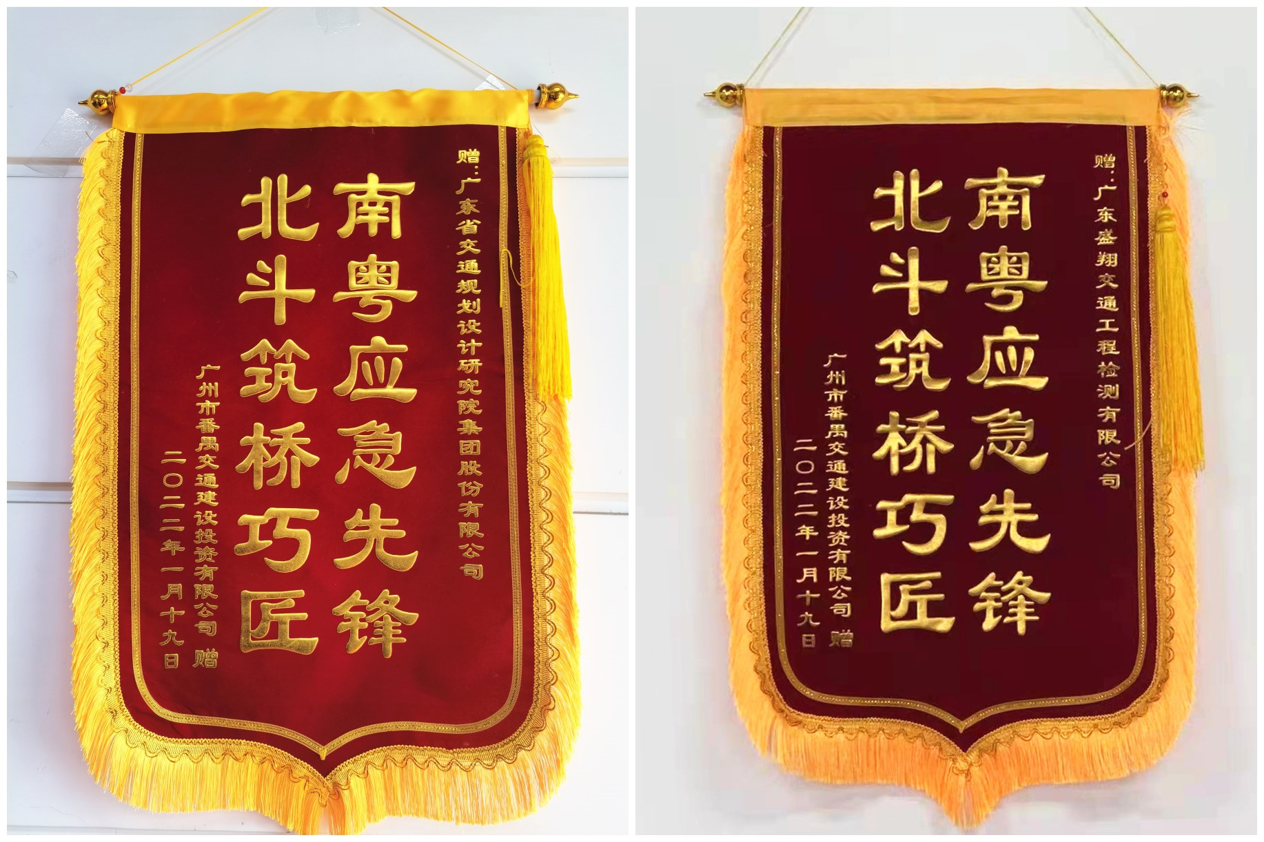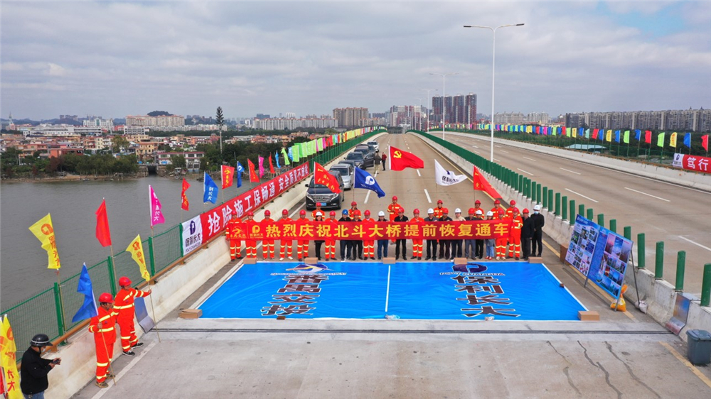1月19日上午11時,番禺北斗大橋提前3個月恢復(fù)通車。北斗大橋的重新開放,將大大減輕西樵大橋、沙灣大橋的交通壓力,提升番禺、南沙兩地居民出行的便利性。我集團與下屬二級子公司盛翔檢測公司獲授“南粵應(yīng)急先鋒,北斗筑橋巧匠”錦旗及表揚信。