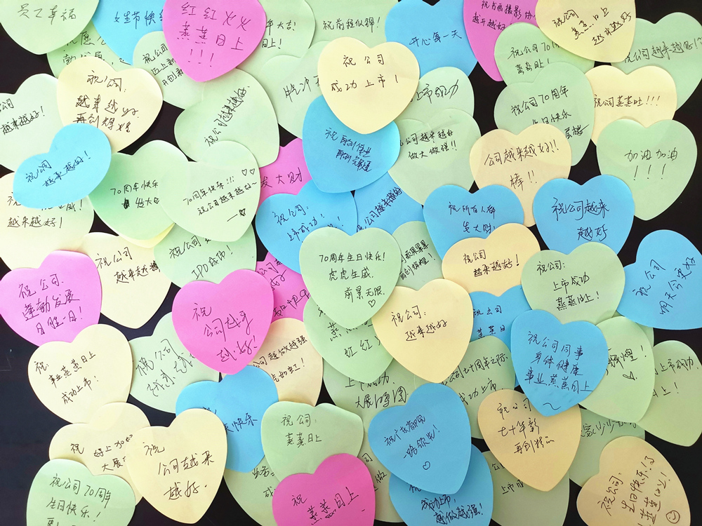 2022年,恰逢公司七十歲生日,公司工會(huì)結(jié)合“三八”婦女節(jié)主題開(kāi)展了“巾幗獻(xiàn)祝?!被顒?dòng)。活動(dòng)現(xiàn)場(chǎng),女職工們將自己對(duì)公司七十歲生日的祝福親筆書(shū)寫(xiě)在心形便簽紙上,并由衷地祝愿公司業(yè)務(wù)蒸蒸日上,發(fā)展越來(lái)越好。公司工會(huì)在活動(dòng)現(xiàn)場(chǎng)還給女職工們準(zhǔn)備了節(jié)日專(zhuān)屬小禮物,以此傳遞對(duì)她們的美好祝福。