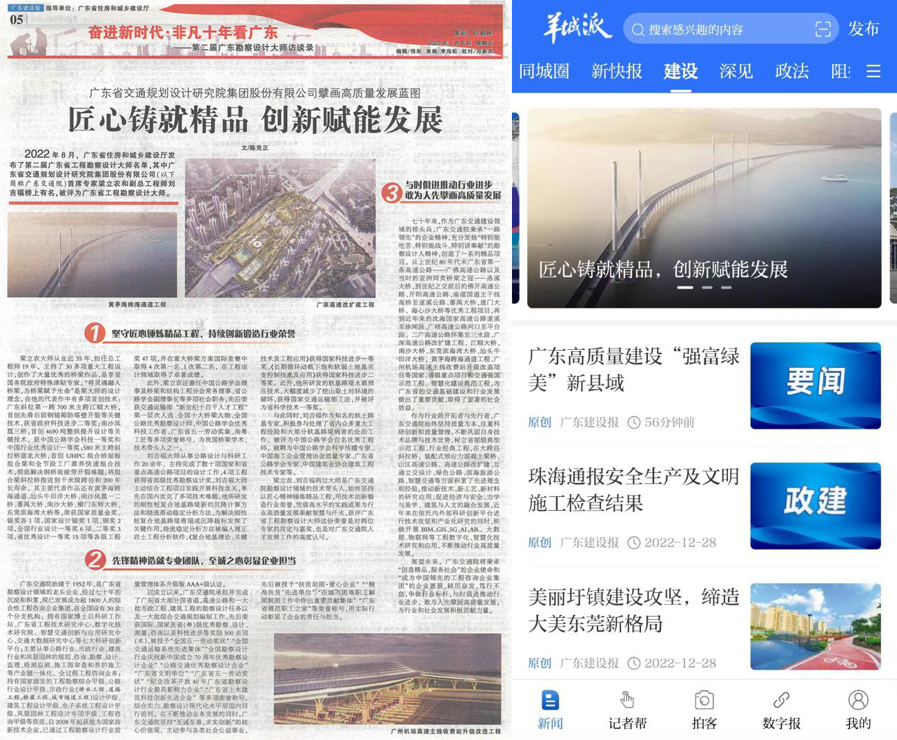 2022年,廣東省住房和城鄉(xiāng)建設廳發(fā)布了第二屆廣東省工程勘察設計大師名單。集團首席專家梁立農(nóng)和副總工程師劉吉福榜上有名,被評為廣東省工程勘察設計大師,并被多家媒體進行專版報道。