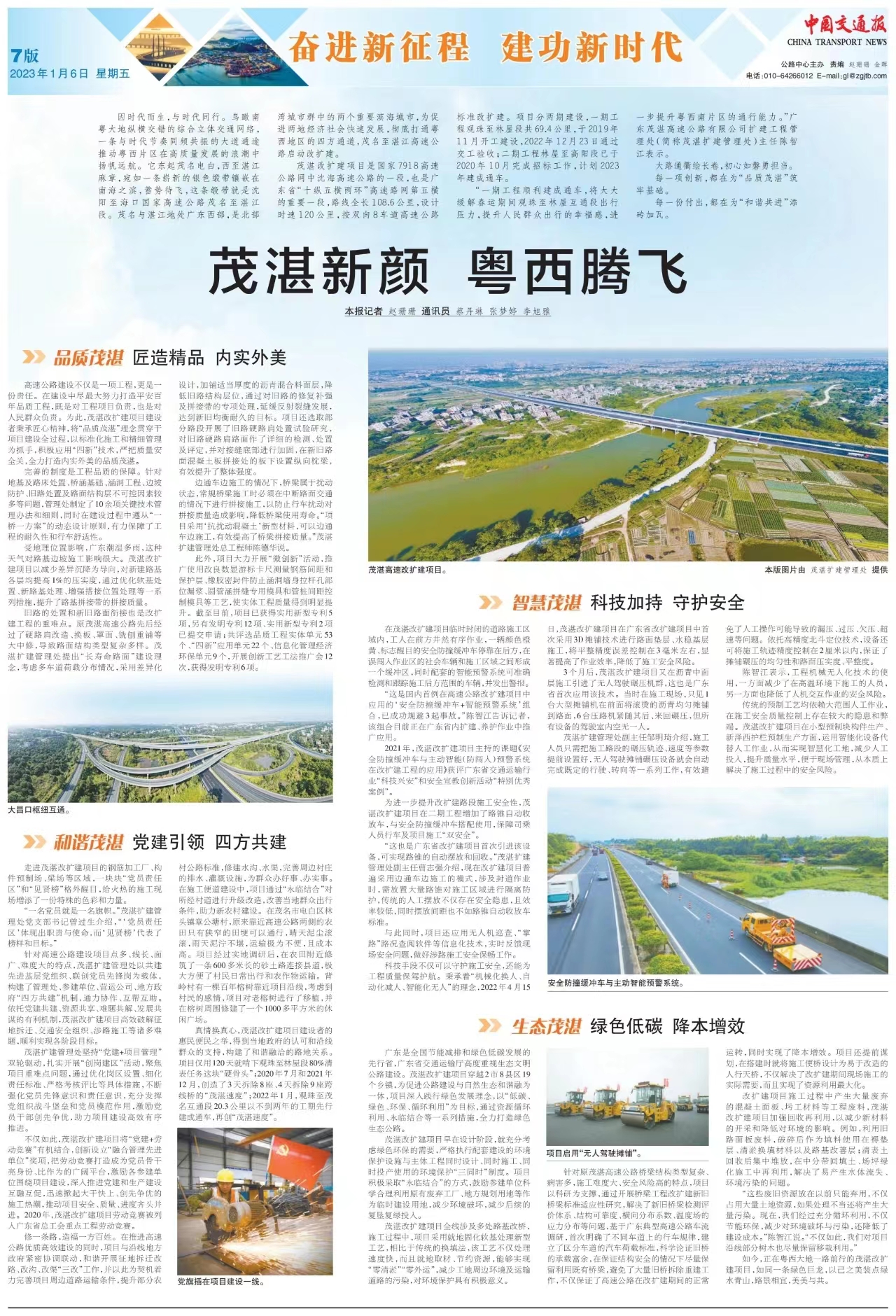 《中國交通報》(第7889期第7版)以“茂湛新顏,粵西騰飛”為題,從品質(zhì)、和諧、智慧、生態(tài)四個角度報道了茂湛高速改擴建項目打造優(yōu)質(zhì)擴建品牌。