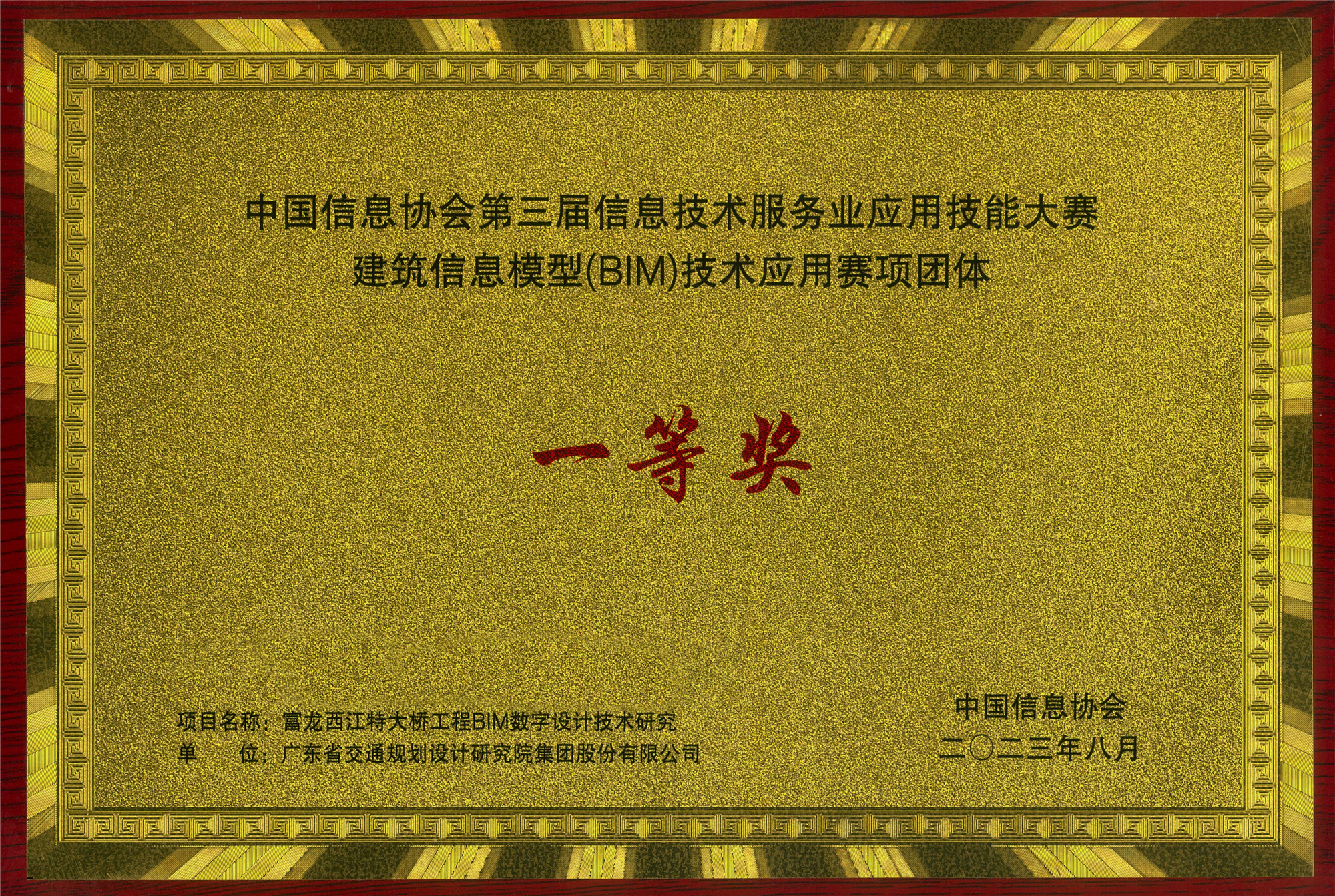 近日,2023年度中國(guó)信息協(xié)會(huì)第三屆信息技術(shù)服務(wù)業(yè)應(yīng)用技能大賽頒獎(jiǎng)典禮在北京隆重召開(kāi)。經(jīng)過(guò)選拔賽、決賽和專(zhuān)家審議復(fù)查,公司《富龍西江特大橋工程BIM數(shù)字設(shè)計(jì)技術(shù)研究》項(xiàng)目從全國(guó)各工程行業(yè)1200余個(gè)BIM參評(píng)項(xiàng)目的激烈競(jìng)爭(zhēng)中脫穎而出,榮獲一等獎(jiǎng)。這是公司首次獲得中國(guó)信息協(xié)會(huì)BIM賽項(xiàng)一等獎(jiǎng)。