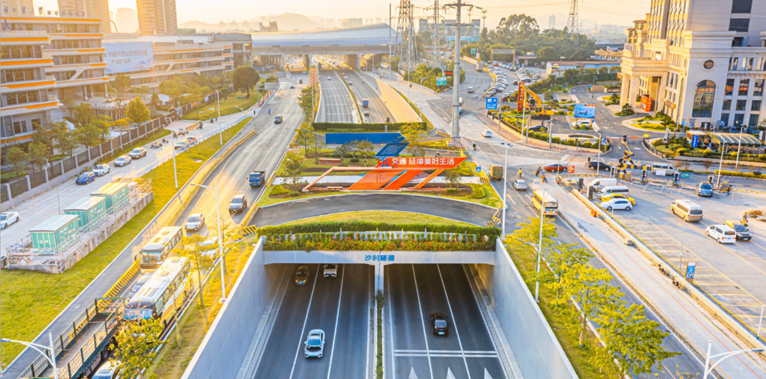 新塘立交改造工程是廣東省交通廳關(guān)于《交通強國建設(shè)廣東試點實施方案》中的交通強國建設(shè)試點項目之一,為高速公路沿線土地綜合開發(fā)的首個示范性項目,旨在探索盤活存量土地的新型發(fā)展模式。該項目建設(shè)控制因素繁雜,設(shè)計工作難度大,涉及公路、市政、建筑等各專業(yè)的協(xié)同合作,統(tǒng)籌協(xié)調(diào)難度極高。項目組成功探索出了一套技術(shù)方案,圓滿地實現(xiàn)用地整合,銜接交通工程改造,融合高速公路與沿線地區(qū)空間。