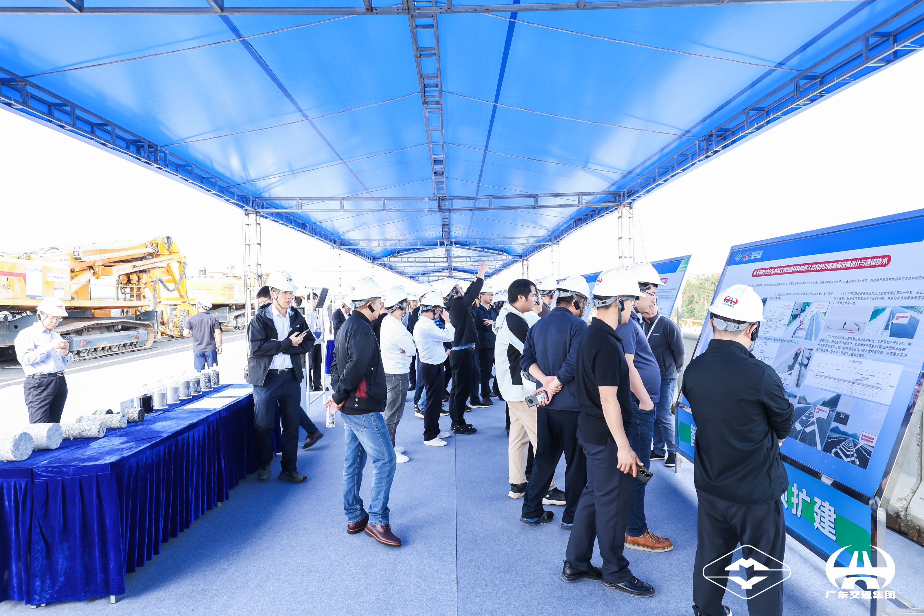 本次大會發(fā)布了12項全國首創(chuàng)技術(shù)成果。廣東省交通運輸廳等單位領(lǐng)導,對深汕西改擴建工程在智能建造領(lǐng)域取得的十二項重大科技成果給予了高度評價,并為完成首創(chuàng)成果的單位頒發(fā)了成果發(fā)布證書。其中,公司參與完成7項,分別為樁梁一體化智能建造裝備與技術(shù)、基于重型振動臺無人工振搗雙T梁工業(yè)化制造技術(shù)、單洞四車道鉆爆隧道全過程機械化建造技術(shù)、輕型全高度系列裝配化擋墻創(chuàng)新設(shè)計、公路邊坡錨桿錨索框架格梁裝配化建造成套設(shè)備、擠擴支盤技在公路改擴建中的首創(chuàng)應用、基于集料100%自加工的功能材料和耐久結(jié)構(gòu)的均衡路面按需設(shè)計與建造技術(shù)等。同時,公司在高速公路改擴建設(shè)計的過程中,不斷探索關(guān)鍵工程技術(shù)應用,積極推進高速公路改擴建數(shù)智化轉(zhuǎn)型,為全國高速公路改擴建項目提供了可借鑒的“智慧樣板”。
