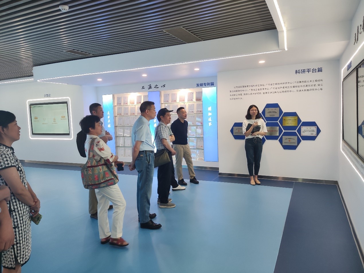 副總經(jīng)理蔡小楊、陳賢文陪同省公路學(xué)會(huì)一行參觀(guān)了企業(yè)展廳,展示了廣東交通院的奮進(jìn)之路、立身之本、工匠之心、品質(zhì)之光、領(lǐng)先之道、信仰之力,彰顯了公司“一路領(lǐng)先”的企業(yè)精神。