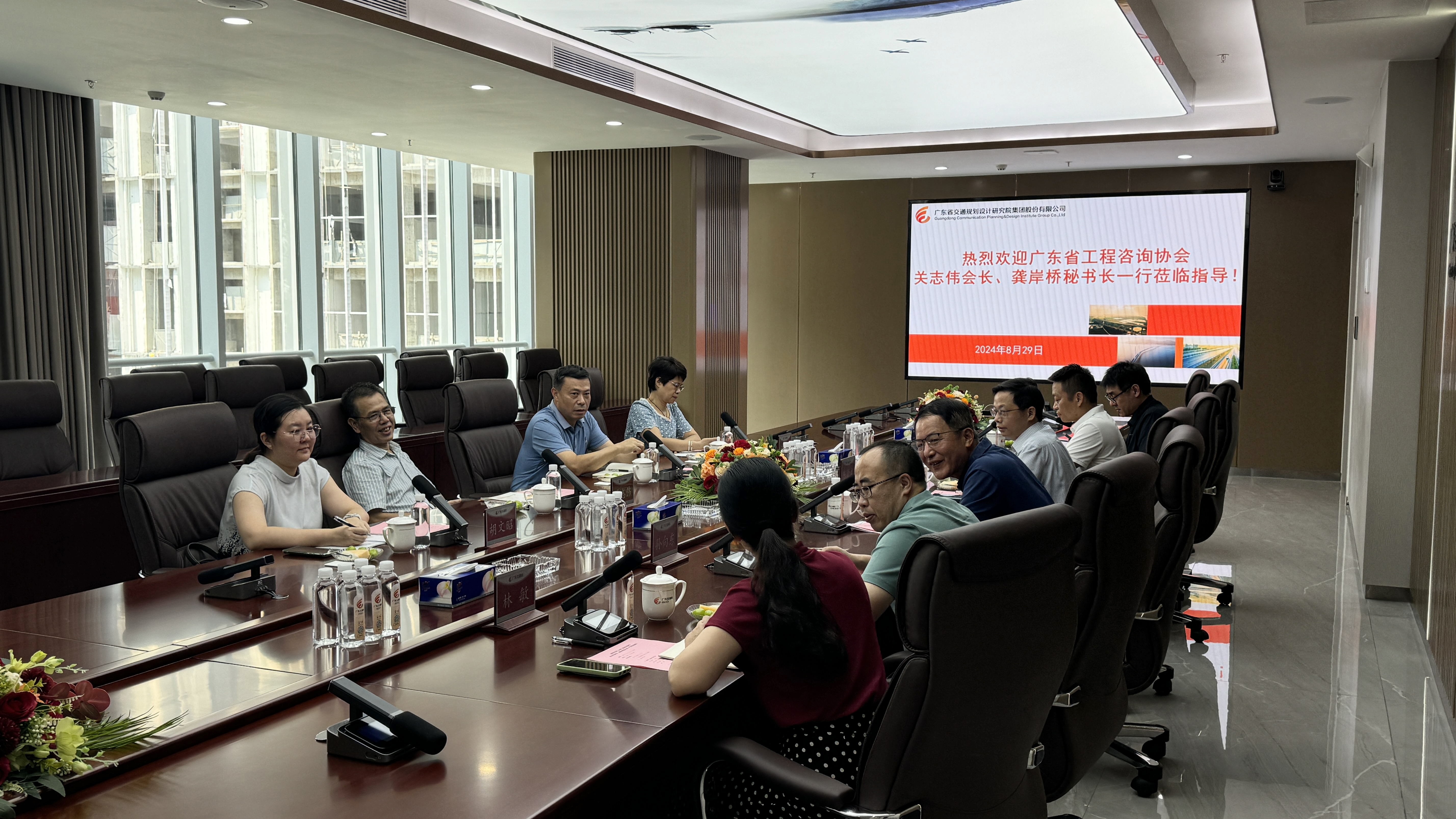 8月29日,廣東省工程咨詢協(xié)會會長關(guān)志偉、秘書長龔岸橋一行蒞臨公司座談交流。公司董事長李江山,副總經(jīng)理陳賢文,總工程師孫向東,總經(jīng)理助理、九域公司總經(jīng)理朱青,市場發(fā)展部主任鄔曉輝,科技質(zhì)量部主任林敏參加了交流會。