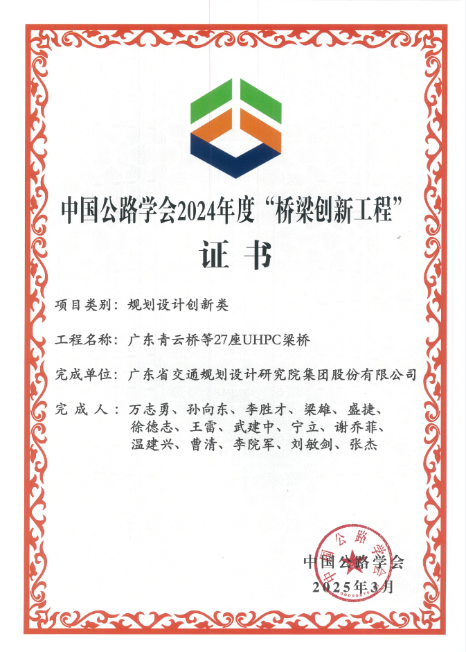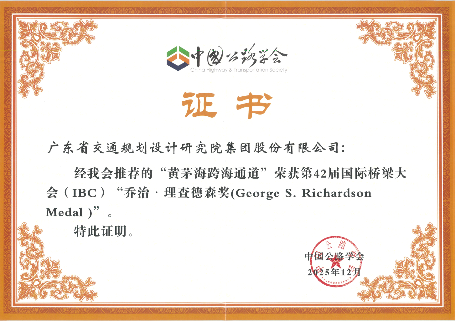 12月5日至12月7日,由中國公路學會橋梁和結構工程分會主辦的2025年橋梁學術會議在湖北武漢召開,公司承擔的黃茅海跨海通道獲“喬治·理查德森獎”紀念表彰、廣東青云橋等27座UHPC梁橋獲“中國公路學會2024年度橋梁創(chuàng)新工程”。公司總工程師孫向東、副總工程師萬志勇等出席會議,并代表公司領獎。