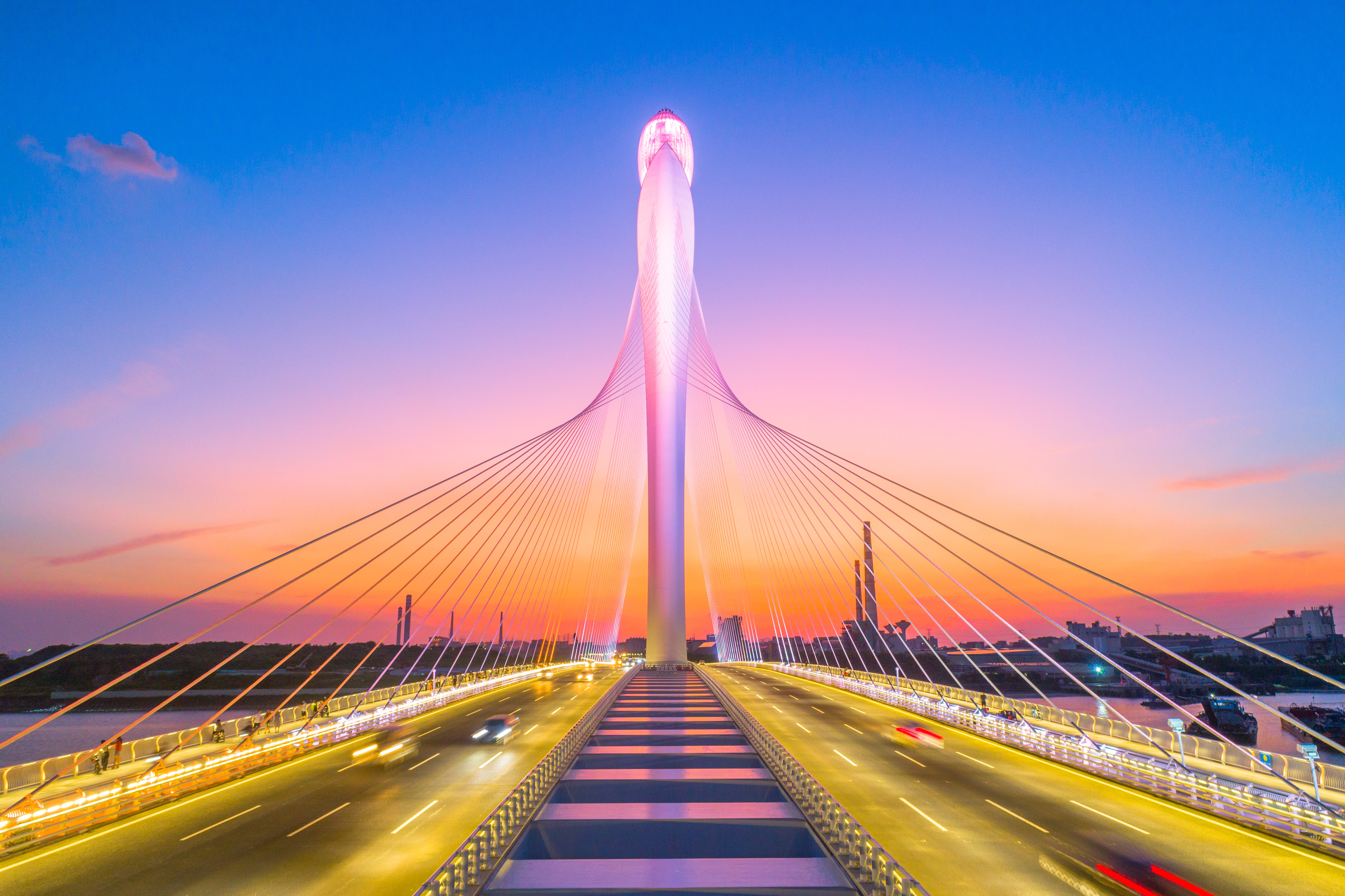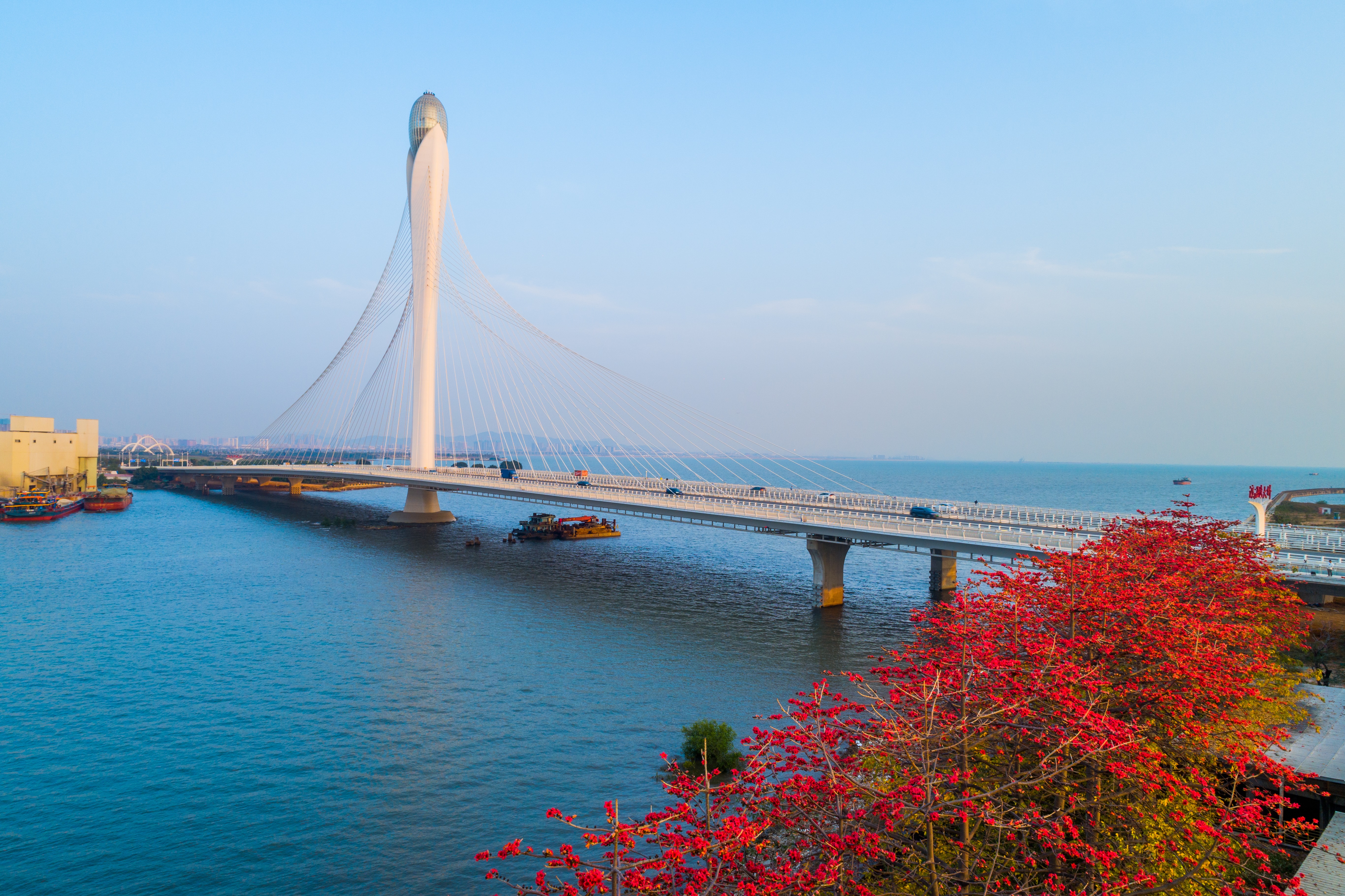 《大跨徑鋼-鋼殼混凝土混合塔斜拉橋關(guān)鍵技術(shù)研究》項(xiàng)目聚焦城市景觀橋梁技術(shù)與藝術(shù)融合創(chuàng)新、鋼殼混凝土混合塔結(jié)構(gòu)創(chuàng)新、異形結(jié)構(gòu)全過程BIM正向設(shè)計(jì)等行業(yè)難題,依托粵港澳大灣區(qū)核心區(qū)域的濱海灣大橋建設(shè)工程開展系統(tǒng)性研究。作為大灣區(qū)標(biāo)志性景觀橋梁,濱海灣大橋?yàn)殡p向八車道城市主干道,橋?qū)?/span>60米、全長973.6米,主橋采用(60+200+200+60)米獨(dú)塔空間扭索面斜拉橋結(jié)構(gòu),不僅是世界首創(chuàng)“鋼-鋼殼混凝土組合混合塔”橋梁,更是國內(nèi)已建成跨度最大、橋面最寬的獨(dú)塔扭索面斜拉橋,以“絲路明燈、玉蘭花開”的設(shè)計(jì)理念成為區(qū)域網(wǎng)紅地標(biāo)。