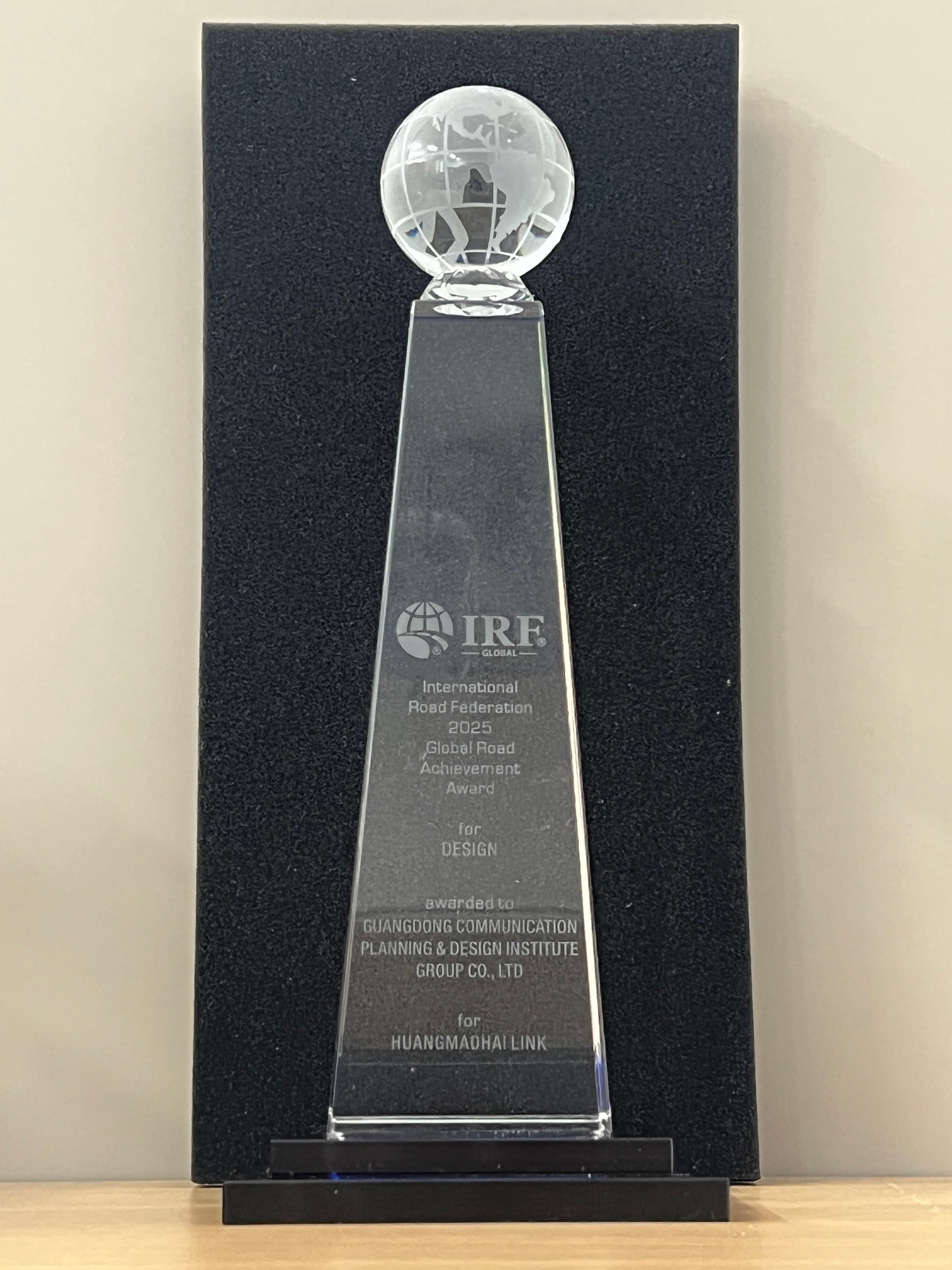 全球道路聯(lián)合會是世界性的公路學(xué)術(shù)組織,于1948年成立。全球道路成就獎(jiǎng)(GRAA)是全球道路聯(lián)合會(IRF Global)于2000年設(shè)立的獎(jiǎng)項(xiàng),用以表彰全球范圍內(nèi)在道路設(shè)計(jì)、施工、管理、技術(shù)創(chuàng)新及可持續(xù)發(fā)展等方面取得卓越成就的項(xiàng)目與個(gè)人,代表著全球道路領(lǐng)域技術(shù)發(fā)展和管理水平的最高成就,是國際交通行業(yè)最具聲望的榮譽(yù)之一。該獎(jiǎng)項(xiàng)分為設(shè)計(jì)、研發(fā)、施工方法、環(huán)境保護(hù)等12類。