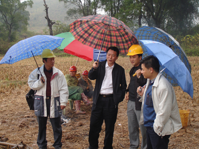 2006年12月13日,李江山院長在巖土勘察部林濟南經(jīng)理和鄧超文副經(jīng)理的陪同下,冒著大雨先后檢查了韶贛高速公路第二標(biāo)段作業(yè)條件最為艱苦的勘察現(xiàn)場工地,李院長每到一處,都認(rèn)真地了解工程進度和質(zhì)量情況,并對大家的辛勤勞動表示了親切的問候。李院長還勉勵大家克服惡劣的天氣條件,嚴(yán)把工程質(zhì)量關(guān),確保如期保質(zhì)完成勘察任務(wù)。
