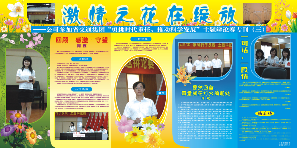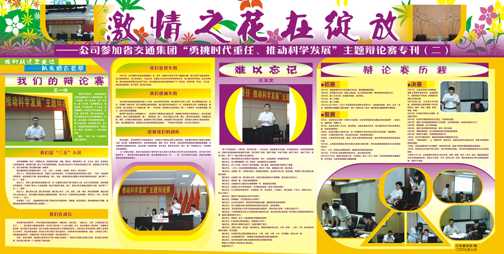 為宣傳這支隊伍備戰(zhàn)辯論賽的先進事跡,行政事務(wù)部編輯出版了辯論賽專刊。