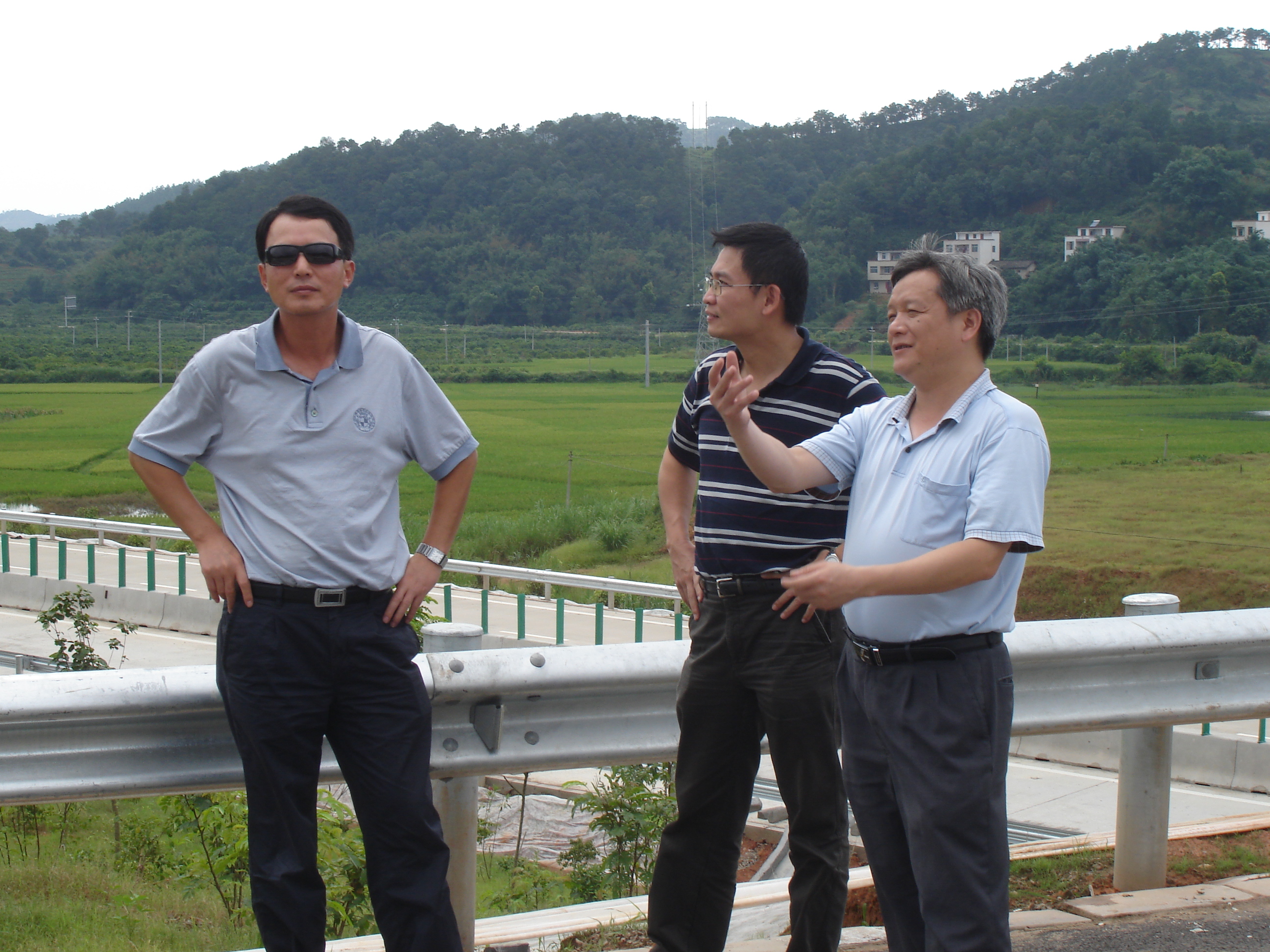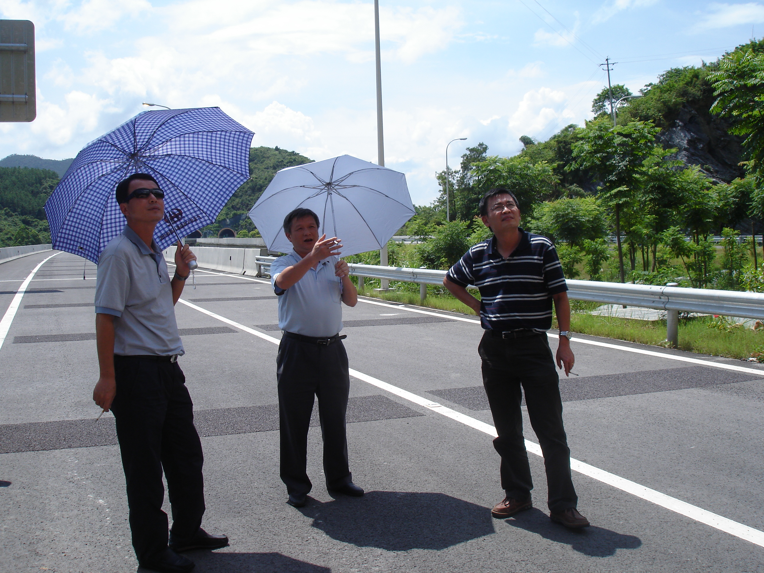 由我司負(fù)責(zé)勘察設(shè)計(jì)的部、省聯(lián)合公路勘察設(shè)計(jì)典型示范工程“廣梧高速公路雙鳳至平臺(tái)段”即將于本月底正式通車,為提前體驗(yàn)該項(xiàng)目所取得的新成果,公司董事長、總經(jīng)理李江山與彭向榮副總工、羅旭東主任等一行于6月22日冒著酷暑查看了廣梧高速公路項(xiàng)目現(xiàn)場(chǎng)。本項(xiàng)目為典型的山區(qū)高速公路,路線長約65km,路線所在區(qū)屬亞熱帶季風(fēng)氣候,高溫多雨,沿線地形較陡峭,起伏變化較大,以山地丘陵為主,約90%屬山嶺重丘區(qū),且植被茂密,山間洼地、谷地多為農(nóng)田耕地;地質(zhì)條件復(fù)雜,穿越地層較多,受斷裂帶構(gòu)造和褶皺的影響,存在滑坡、中小型崩塌、巖溶、高液限土、軟土等不良地質(zhì),生態(tài)環(huán)境脆弱。路線或高填深挖、或橋梁跨越山谷、或隧道穿越山體、或陡坡路堤、或高邊坡,存在兩段各約10km的長上下坡路段。本項(xiàng)目技術(shù)標(biāo)準(zhǔn)為設(shè)計(jì)速度80km/h,雙向四車道,共有橋梁19575m/86座,隧道12581.5雙洞m/18座,互通立交共4處,30m以上的高邊坡7693m/42處。