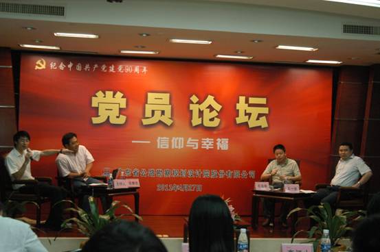 本次論壇是為紀(jì)念中國共產(chǎn)黨建黨90周年,推進(jìn)公司學(xué)習(xí)型黨組織建設(shè)活動而組織策劃的。論壇結(jié)束后,許多黨員表示,活動形式比較活潑,聽了嘉賓的討論后對“什么是幸?!焙汀霸鯓硬拍苄腋!庇兴鶈l(fā)。