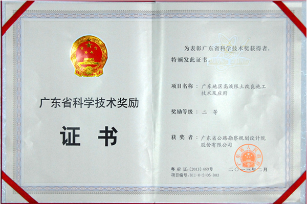 公司參與完成的“廣東地區(qū)高液限土改良施工技術(shù)及應(yīng)用”項目獲廣東省科學技術(shù)二等獎
