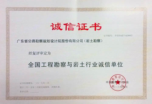 祝賀公司被評為全國工程勘察與巖土行業(yè)誠信單位