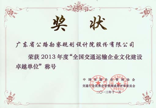在近日召開的第八屆全國交通運(yùn)輸企業(yè)文化建設(shè)高峰會上,我司榮獲2013年度“全國交通運(yùn)輸企業(yè)文化建設(shè)卓越單位”稱號。至此,公司已連續(xù)三年被評為全國交通運(yùn)輸企業(yè)文化建設(shè)卓越單位。特此報(bào)喜。