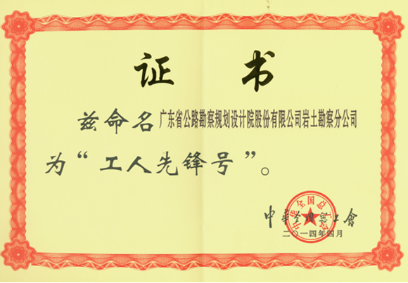 4月30日上午,廣東省慶祝五一國際勞動節(jié)暨勞模表彰大會在廣州舉行,公司巖土勘察分公司在會上受到表彰,被中華全國總工會命名為“工人先鋒號”榮譽稱號。公司工會主席、副總經(jīng)理李琴代表公司參加會議。 今年廣東共獲得全國五一勞動獎狀15個、全國五一勞動獎?wù)?6個、全國工人先鋒號55個。