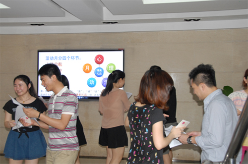 5月6日上午,公司在2號樓一樓大堂舉行了2015年“關(guān)注心靈,點(diǎn)燃激情”心理健康活動月啟動儀式。公司副總經(jīng)理、工會主席李琴,行政事務(wù)部工作人員和工會小組長參加了儀式?;顒蝇F(xiàn)場,小組長們?yōu)檫^往員工發(fā)放了心理自測問卷和母親節(jié)祝???。拿到問卷的小王下午向我們反饋:“我自測了其中3套問卷,覺得挺有意思的。在活動的參與過程中,我覺得自己在成長。這是一次很有意義的活動?!?br> 本次活動為公司2015年“關(guān)注心靈,點(diǎn)燃激情”主題文化實(shí)踐活動的內(nèi)容之一,在公司尚屬首次,活動旨在引導(dǎo)職工關(guān)注心靈,增強(qiáng)心理健康意識?;顒庸卜帧靶撵`啟航”、“心靈理療”、“心靈交匯”和“心靈互動”幾個環(huán)節(jié),全程參與活動還有精美禮品贈送。