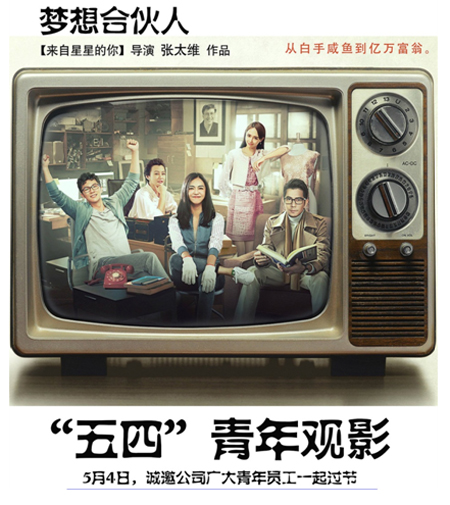 《夢想合伙人》講述了小鎮(zhèn)姑娘蘆珍溪、女強(qiáng)人文清以及拜金女顧巧音三個(gè)不同年齡階段女人有關(guān)青春、夢想、創(chuàng)業(yè)的勵志故事。影片的主題:“沒有夢想,何必遠(yuǎn)方”,同樣將激勵公司的每一位青年員工更加充滿斗志,通過不斷的學(xué)習(xí)和實(shí)踐,磨練意志、創(chuàng)優(yōu)爭先,為公司進(jìn)一步發(fā)展壯大作出自己應(yīng)有的貢獻(xiàn)。
