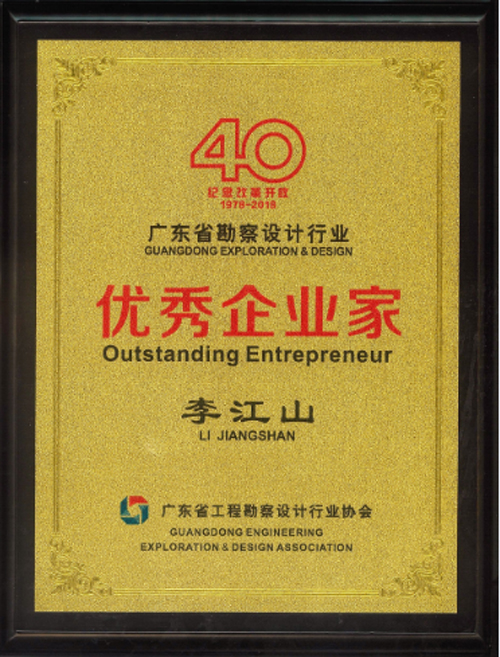 在廣東省工程勘察設(shè)計行業(yè)協(xié)會舉辦的紀(jì)念改革開放40周年廣東省勘察設(shè)計行業(yè)表彰活動中,我公司董事長李江山先生榮獲廣東省勘察設(shè)計行業(yè)優(yōu)秀企業(yè)家稱號,總工程師梁立農(nóng)先生榮獲廣東省杰出設(shè)計師稱號。 特此報喜!
