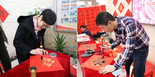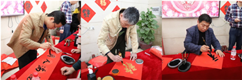 寫春聯(lián)、貼春聯(lián)是我國千百年歷史中流傳下來的民族習俗,表達了人們對新一年的期盼和厚望。在書寫春聯(lián)現(xiàn)場,來自公司各部門、各分院的愛好者們揮毫潑墨,大顯身手,行草楷風格各異,筆力遒勁,氣韻生動,盡展書法才藝。