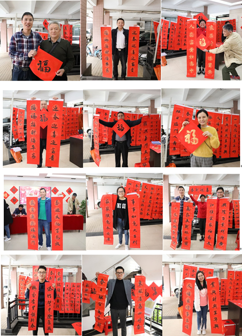 活動現(xiàn)場翰墨飄香,前來領取春聯(lián)的職工絡繹不絕。現(xiàn)場有事先寫好的春聯(lián)、“?!弊郑蚵毠ぐl(fā)放;職工也可自選或自擬春聯(lián)內(nèi)容,由書法愛好者現(xiàn)場書寫。火紅鮮艷的春聯(lián)承載著職工們揮別狗年、喜迎豬歲的美好愿景。大家手捧著同事們親手書寫的一副副精美的春聯(lián)、一個個喜慶的福字,愉悅之情溢于言表,為新春佳節(jié)增添了一份別樣的喜氣。本次活動送出春聯(lián)與“福”字共300余份。
