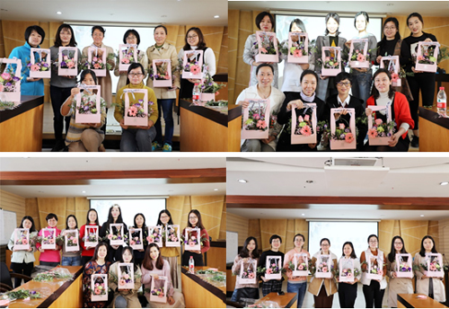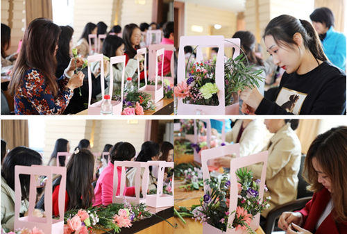 陽春三月,正是萬物生光輝的好時節(jié);身在花城,更能盡情領(lǐng)略鮮花的美麗與芬芳。在本次花藝活動現(xiàn)場,來自各部門、分院、子公司的50余名女職工在外部花藝講師的教授下,親自參與插花花籃的手工制作。嬌艷的玫瑰、素雅的康乃馨、明麗的非洲菊,配以滿天星的細(xì)密玲瓏以及尤加利葉的交錯別致,在各位女職工的心靈手巧之下,更是相得益彰、璀璨增華。