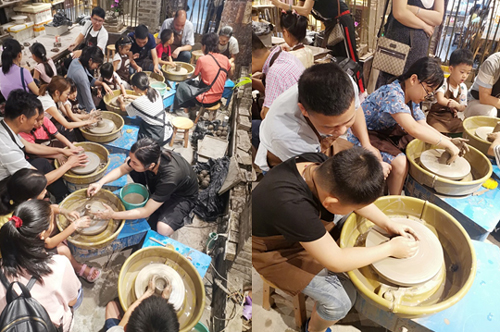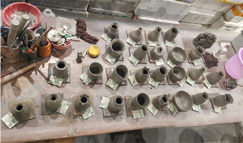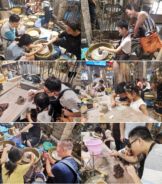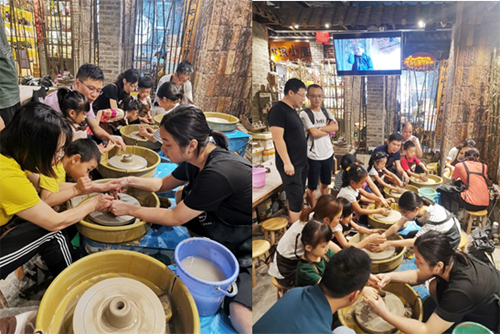 活動(dòng)現(xiàn)場(chǎng),各位同事帶著子女,在專業(yè)老師的講解和指導(dǎo)之下,一起拉坯、刻畫,親手制作出獨(dú)一無(wú)二的陶藝作品。一個(gè)個(gè)形狀、花紋各異的陶瓷坯件之上,都凝結(jié)著一段段獨(dú)特的回憶以及一份份珍貴的親子情。