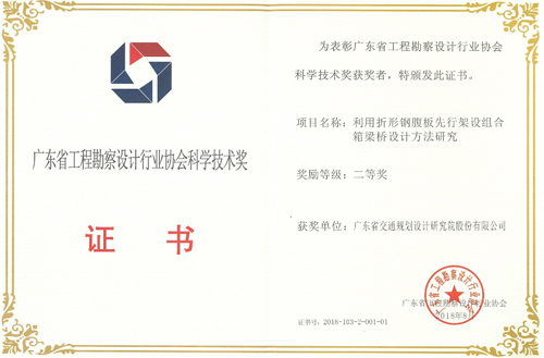 《利用折形鋼腹板先行架設(shè)組合箱梁橋設(shè)計方法研究》榮獲二等獎,獲獎人員:盧紹鴻、梁立農(nóng)、劉玉擎、孫穎、何海、吳玉剛、曾田勝、黃毅東、梁志勇、劉桂紅。