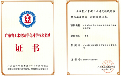 《廣東省山區(qū)高速公路綠色公路設(shè)計關(guān)鍵技術(shù)研究》榮獲一等獎,獲獎人員:彭向榮、黃湛軍、梁立農(nóng)、陳新富、陳競飛、梁志勇、李國安、溫玉輝、萬志勇、羅旭東、王強(qiáng)、孫向東;