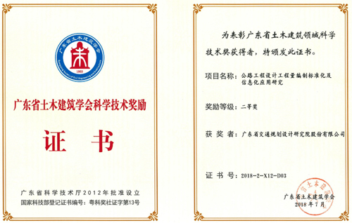 《公路工程設(shè)計工程量編制標(biāo)準(zhǔn)化及信息化應(yīng)用研究》榮獲二等獎,獲獎人員:管培、苗德山、杜燕群、吳偉彬、王燕平、郭衛(wèi)民、陳潮銳、蘇衛(wèi)國;