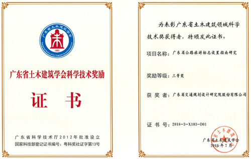 《廣東省公路旅游標(biāo)志設(shè)置指南研究》榮獲三等獎,獲獎人員:徐俊德、許蔚華、謝陳峰、楊振星、唐偉。